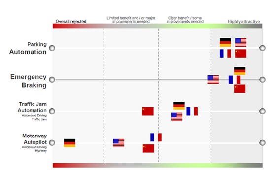 △图1 各个自动驾驶功能的民众接受度,自动泊车需求呼声很高
