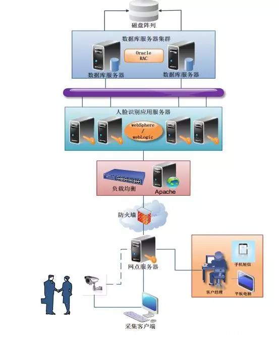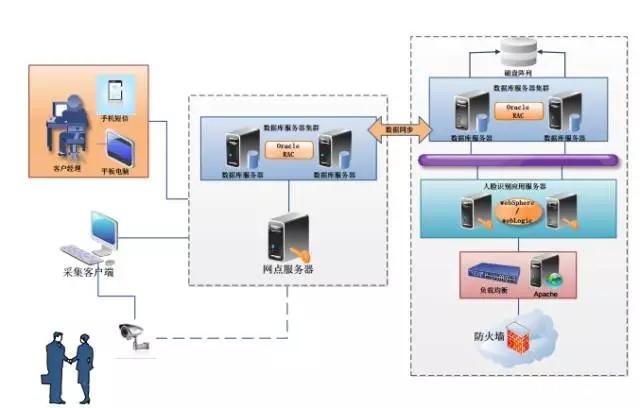 VIP银行客户人脸识别系统分采集客户端、网点服务端、人脸识别系统服务器三个部分。构架布署可分为集中式和分布式两种。